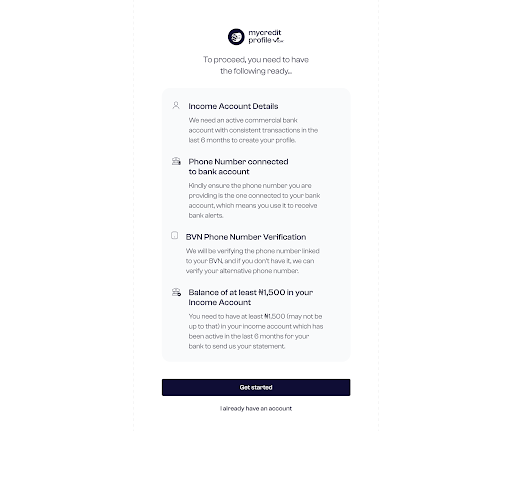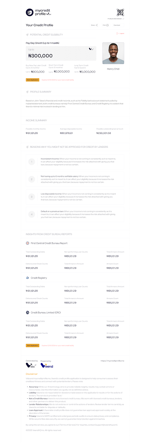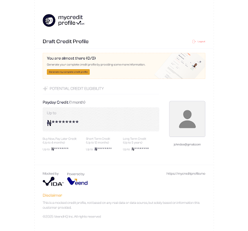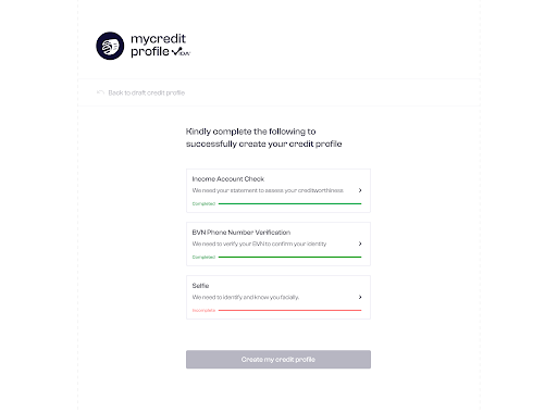 The step-by-step process of creating a credit profile on Vida can be simplified in the following steps.
