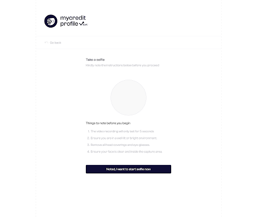 A selfie verification is needed to confirm your identity, prevent fraud and evaluate the consumer. Before starting Selfie Verification, the user is guided to ensure key requirements are met, as shown on the screen.