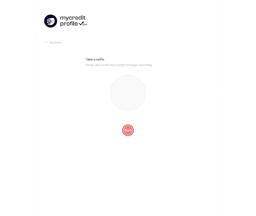 Step 1: The user clicks the Start button, and the Selfie Verification process begins, lasting about 5 seconds.