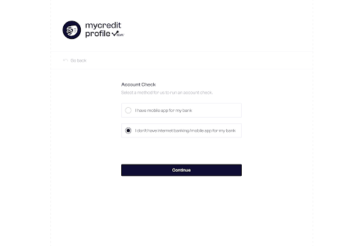 Step 1: The user selects whether they have a mobile banking app to proceed with the account check.