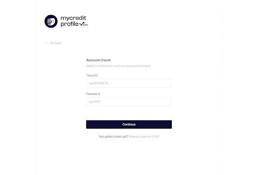 Step 2: If the user does not have a mobile banking app, they receive a Ticket ID and password via their phone number.